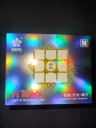YUXIN Cubo Rubik magnetico de 8 colores efecto luminoso. Tiene los stickers quitados pero sin duda se ve mucho mejor sin ellos. Por lo demas esta nuevo a estrenar. Mas cubos en mi perfil