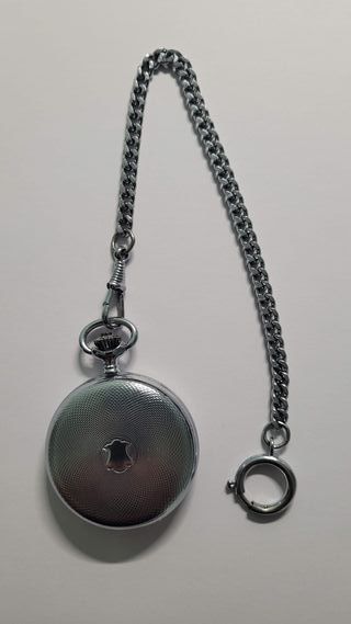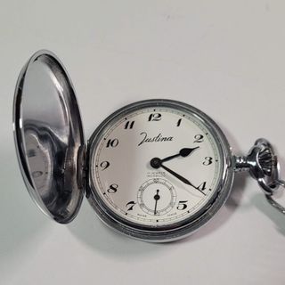 Reloj de bolsillo Justina con su cadena, en estado impecable, sin desgaste y totalmente funcional. Conserva la tapa original, algo poco habitual en este tipo de piezas. No presenta golpes, arañazos ni marcas. Ideal para colección o para usar como pieza vintage.