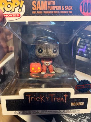 Figura Funko Pop! Deluxe de Sam de la película Trick 'r Treat. Edición especial. - Personaje: Sam. - Película: Trick 'r Treat. - Número de figura: 1002. - Incluye calabaza y saco.