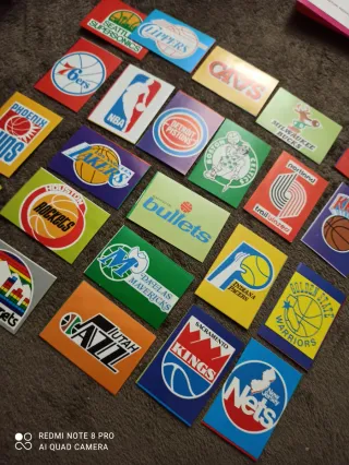 Colección de 23 cromos de la NBA del álbum Súper Canasta. Años 90, nunca pegados. La colección de escudos era de 24, sólo me falta el de Chicago Bulls - Incluye equipos como Seattle Supersonics, LA Lakers, Boston Celtics, 76ers, Knicks, Spurs... y más. - Diseños clásicos de los equipos de baloncesto de la NBA