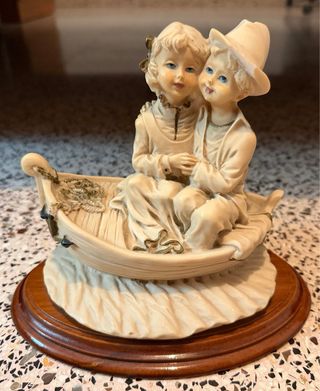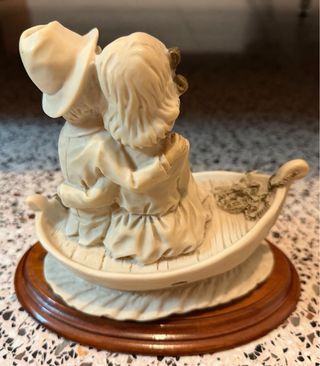 Está en perfecto estado de conservación. Es de los años 80. En base de madera. Es súper bonita y detallada. - Figura decorativa de una pareja sentados en una barca. - Base de madera pulida. - Detalles en resina. - Diseño romántico.