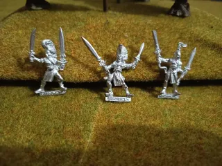 Figuras de metal de Bailarines Guerreros de Warhammer. Son tres miniaturas para coleccionistas o jugadores. Oldhammer - Tres figuras de metal. - Temática de fantasía. - Listas para pintar o jugar.
