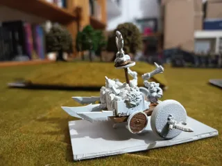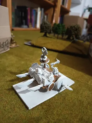 Vagoneta de ataque Snotling casera para Warhammer. Ideal para coleccionistas y jugadores. - Diseño único y personalizado. - Figuras de Snotlings incluidas. - Base de peana incluida.