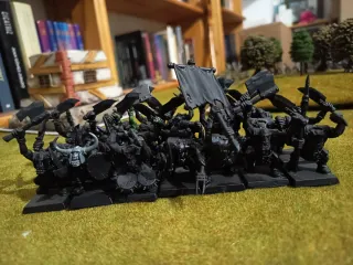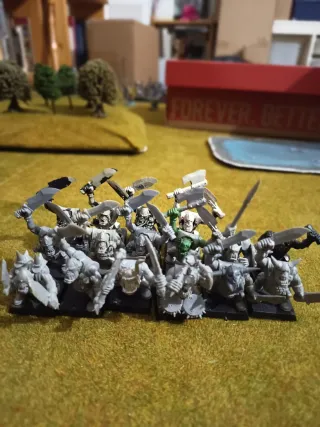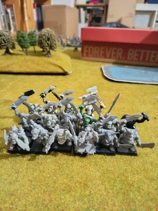 16 Figuras de guerreros orcos para Warhammer. Listas para pintar - Miniaturas de plástico - solo 1 imprimada en negro y 4 imprimadas y despintadas. - incluye musico y campeon