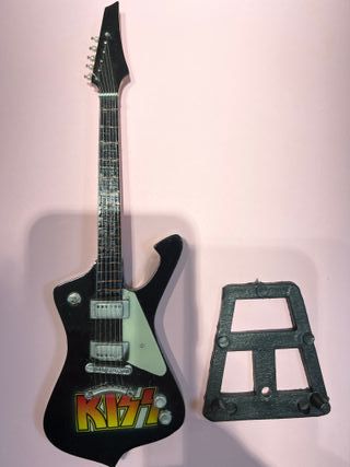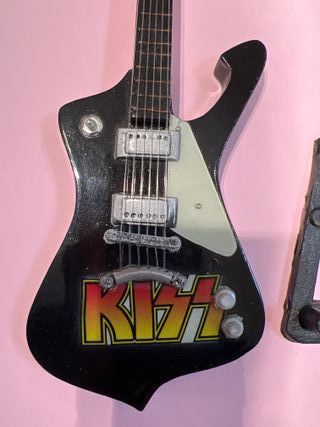 Mini guitarra decorativa con el logo de KISS. - Diseño negro brillante. - Logo de KISS en colores vibrantes.