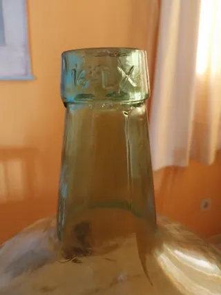Garrafa antigua de vidrio verde, conocida como Dama Juana. - Capacidad de 16 litros. - Ideal para decoración o coleccionismo.