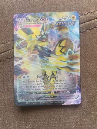 Carta Pokémon Zeraora VMAX, edición en español. - Ataque: Puño Cruzado - PS: 340 - Número de carta: 166/198 - Ilustrador: PLANETA Tsuji