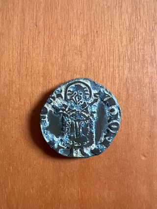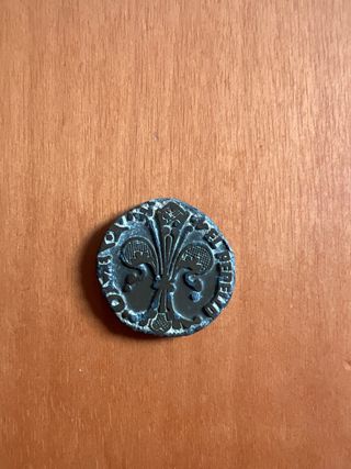 Moneda antigua con diseño de Flor de Lis, datada del siglo XIII. Presenta inscripciones en su borde. - Diseño central de Flor de Lis. - Inscripciones en el perímetro. - Numismatica ESCUCHO OFERTAS
