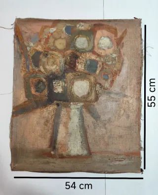 Cuadro original del artista Luis Cañadas. - Pintura al óleo sobre lienzo. - Representación de un jarrón con flores. - Medidas: 54 cm x 55 cm.
