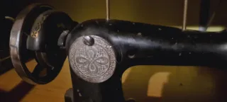 Máquina de coser Sigma de estilo antiguo, con un diseño clásico y robusto. - Cuerpo principal de metal negro. - Detalles ornamentales en los laterales. - Volante de metal para accionamiento manual.