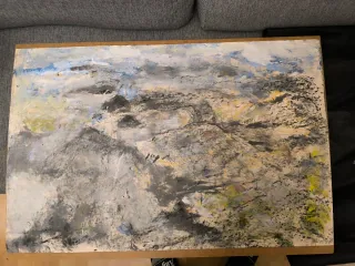 : Paisaje Técnica mixta sobre papel de lino, policromado. Fechado 2012 y firmado abajo a la derecha. Tamaño 66 x 101,5 cm Obra pictórica de Juan Luis Goenaga. Representa un paisaje abstracto con texturas y colores variados.Pliegues, agujeros, bordes dañados. - Técnica mixta sobre lienzo policromado - Tonos grises, azules y ocres predominantes. - Firmado por el artista. - 66x102 cm