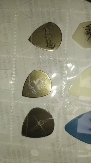 Conjunto de púas de guitarra con diseños de las bandas Stratovarius y Ensiferum. Precio por unidad. - Púas de titanio. - Diseño de Stratovarius. - Diseño de Ensiferum.