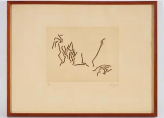 Autor: Eduardo Chillida (San Sebastián, 1924-2002). Título: ESKU X (1973). Descripción: aguafuerte sobre papel BFK Rives firmado a lápiz por el artista. Ejemplar 55/75. Editado por Grafos Verlag, Vaduz. Referencia Martin van der Koelen nº 73005. Medidas sin marco 51x38,5 cm. Medidas de la plancha 16x12 cm. Obra en buenas condiciones.