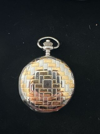 Elegante reloj de bolsillo con diseño Bargello. Su tapa presenta un intrincado grabado que le da un toque clásico y distintivo. - Diseño Bargello. - Tapa grabada.