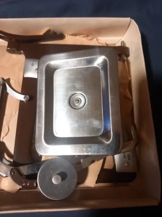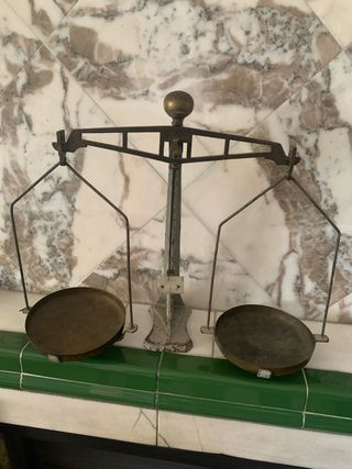 Báscula de precisión para pesar cartas y objetos pequeños. Fabricada en metal con detalles en latón. - Diseño clásico y elegante. - Escala graduada hasta 500 gramos. - Incluye pesas. - Ideal para coleccionistas o decoración.