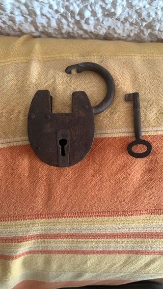 Candado antiguo de hierro con llave