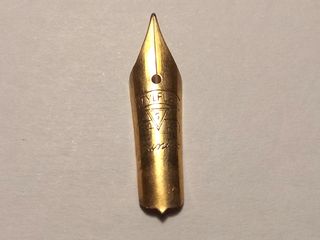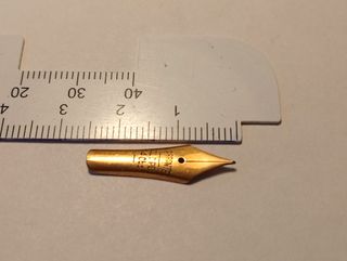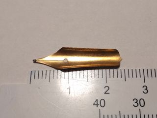 Liquidación de existencias. Lote de 1 Plumín antiguo de Oro ---Warranted 14Cts 585--- de 29mm de largo para Plumas Estilográficas. Este plumín llevaba guardado junto con otros por cese de actividad desde 1967. Precio del Lote: 9€ Lote número: 89