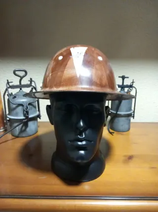 Casco de minero de estilo antiguo. Presenta un diseño clásico con un acabado que evoca materiales tradicionales. - Diseño acanalado. - Borde protector.