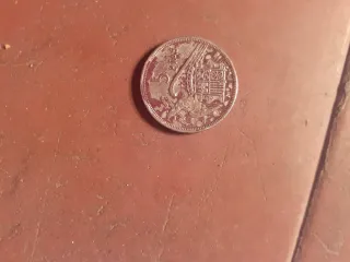 Moneda antigua con diseño detallado. - Diseño con escudo y elementos decorativos. - Borde con relieve.