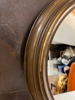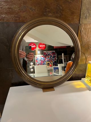 Elegante espejo con un marco de hierro y bronce. Su diseño clásico añade un toque de distinción a cualquier espacio. Pesado. - Marco con patina. - Forma redonda.