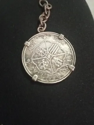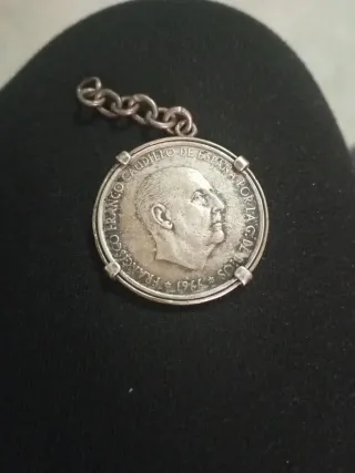Moneda antigua conmemorativa de Francisco Franco. - Año: 1966 - Inscripción: Franco Caudillo de España por la G. de Dios - Material: Metal plateado - Incluye cadena para colgar