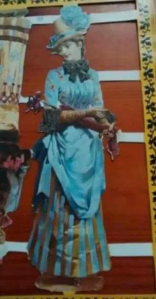 Lámina antigua de cromos troquelados, 4 damas con vestidos de la época victoriana. Ideal coleccionistas. - Medidas: 30 × 22 cm. - Diseño inglés antiguo. - Perfecto estado de conservación.