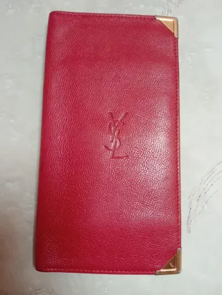 Elegante cartera de Yves Saint Laurent Paris. - Diseño clásico y atemporal. - Acabado en piel texturizada. - Detalle de logo grabado en el centro. - Esquinas reforzadas con detalles metálicos dorados. Cartera antigua larga de piel roja de Yves Saint Laurent Paris, con tarjetero y compartimentos para billetes en color rojo burdeos y esquinas en metál dorado con logo, tiene más de 30 años, en perfecto estado, unas pequeñas marcas mínimamente, como se ve en las imágenes. 🤍 Piezas únicas | estilo elegante & minimalistas 🚚 Envíos rápidos | descuentos por lote 👉 Sígueme para ver nuevos productos