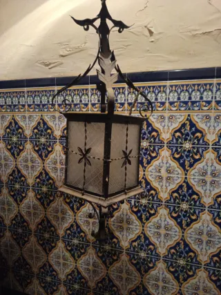 Farol antiguo de metal y cristal