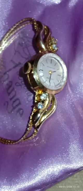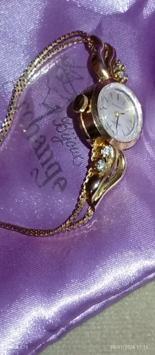 Precioso reloj antiguo de plata con un diseño muy elegante. - Detalles en oro. - Adornado con pequeñas gemas.