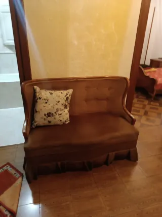 Vendo sofá antiguo de estilo clásico, tapizado en terciopelo. Pieza elegante y decorativa, perfecta para recibidor, dormitorio o rincón especial del salón. Tiene un aire vintage con mucho encanto y presencia. Estructura sólida y estable. El terciopelo conserva su textura suave y aporta un toque sofisticado. Ideal para decoración clásica, romántica o tipo palaciego. Se encuentra en buen estado general