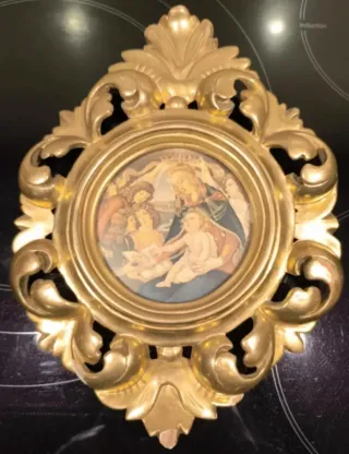 Cornucopia Antigua Pequeña con daños pequeños... Cuadro "La Virgen del Magnificat" (Madonna del Magnificat), una famosa obra del maestro renacentista italiano Sandro Botticelli.