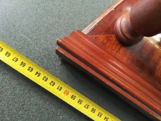 Elegante perchero de madera con un diseño clásico. Ideal para dar un toque vintage a tu hogar.mide 65cm está bastante bien - Acabado en tono marrón oscuro. - Detalles decorativos en la base y los soportes.
