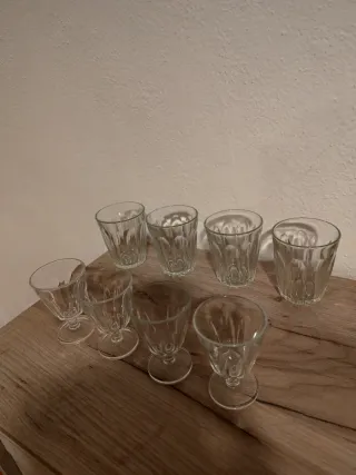 Conjunto de vasos y copas de cristal de la marca Impact Duralex Spain. Piezas con un diseño clásico y elegante. - Fabricados en cristal transparente. - Diseño con relieve. - Base con pie.