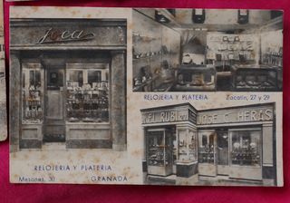 Tarjeta de garantía antigua para reloj de relojería y platería Joca de Granada. - Joca Mesones, 30 Granada - Relojería y Platería Zacatín, 27 y 29 - El Rubi Jose C. Heras