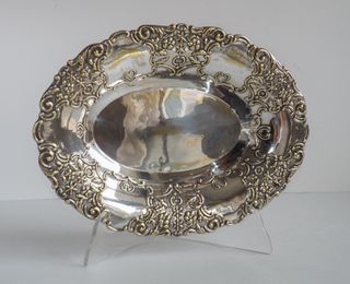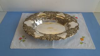 Bandeja ovalada antigua plateada