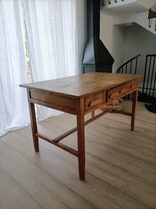 Mesa de despacho antigua. En muy buen estado salvo por unas manchas en el sobre, faciles de restaurar. 130x80 (alto 78)