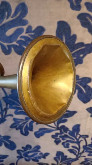 Trompeta antigua de latón, utilizada por el ejército británico. - Fabricada por Boosey-Hawkes. - Diseño clásico de trompeta. - Acabado en latón -Fabricada en Londres. Primera mitad siglo xx. -Ideal para amantes del coleccionismo en general y militar en especial. -Necesita mantenimiento, tiene boquilla pero no suena. -Dimensiones: 51 cm x 12 cm