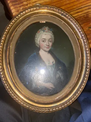 Preciosa miniatura de retrato antiguo, en marco de madera oscura. Ideal para decoración o coleccionistas. - El marco es de madera oscura y metal. - La miniatura está en buen estado de conservación.