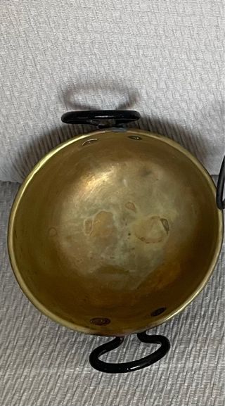 Cazo grande de latón y mango de hierro.Mide unos 47 cm.