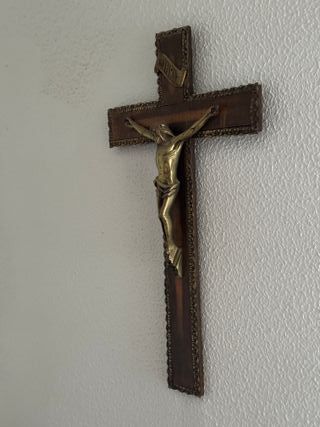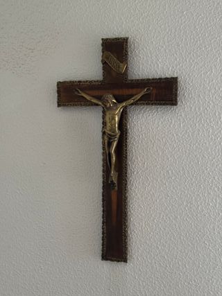 Crucifijo antiguo madera y metal