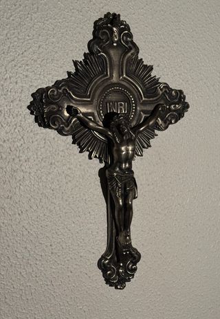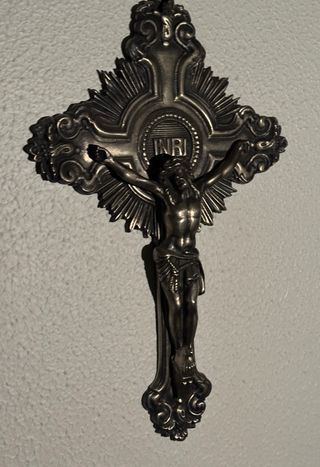 Crucifijo antiguo metálico plateado