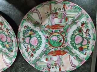 2 platos de porcelana china, pintados a mano en perfecto estado, miden 26 cm de diámetro de Macau, siglo xx
