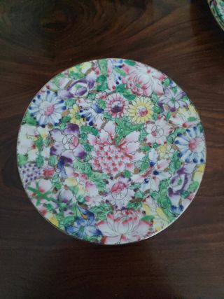 Precioso plato de porcelana china con decoración floral. Ideal para coleccionistas o amantes de la porcelana. - Diseño floral con detalles dorados. - Porcelana fina y delicada. - Perfecto estado de conservación. - Diámetro aprox 26cm