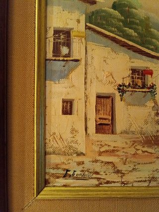 Bonito cuadro pintado por E. Gonzalez. - Representa un paisaje marino con una casa y una barca. - Marco de madera oscuro.