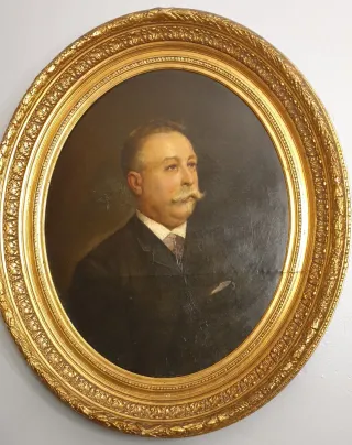 Precioso cuadro ovalado de principios del siglo XX. Un retrato clásico enmarcado. - Marco dorado con detalles ornamentales. - Pintura al óleo sobre lienzo.
