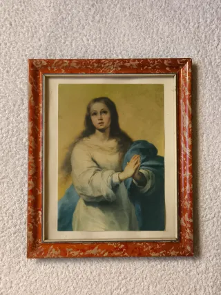 cuadro de la virgen Inmaculada Concepción con 50 años de antigüedad. Con marco de madera original en perfectas condiciones
