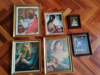 Lote de 5 cuadros antiguos varios tamaños