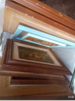 Conjunto de varios cuadros con marcos de madera y uno con marco verde brillante. Ideales para decorar cualquier espacio. - Marco principal con relieve dorado. - Variedad de tamaños y estilos de marcos.22 unidaded .Teléfono 688232084