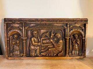 Portal de belén antiguo tallado en resina y madera. Muy bien conservado.