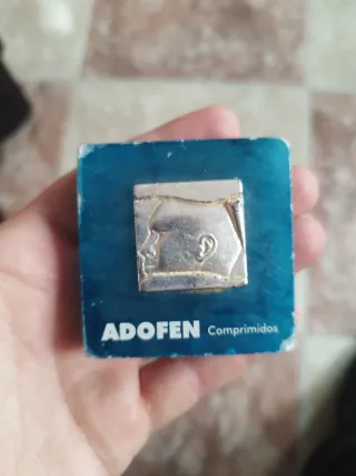 Pin publicitario antiguo ADOFEN Pin o insignia publicitaria antigua del medicamento ADOFEN (fluoxetina). Objeto promocional que se entregaba a médicos o farmacias. Ideal para coleccionistas de publicidad farmacéutica, medicina o pins antiguos. Estado: usado, con señales del paso del tiempo (ver fotos). Entrega en mano o envío.